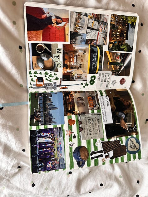 ins: taking pictures and videos of everything; reading and writing and drawing and arts and crafts and happiness; hot showers (the good place) = real cure for depression (big mental health doesn’t want you to know this); conversations with strangers; romanticizing life (for free); saying “no”; going for a walk (another cure for depression); experiences à la concerts, museums, going out, not being in my room all weekend long; the artist way (tried and failed; there are not enough hours in the week); the color blue (my newly declared favorite color in every shade); blogging; canva moodboards; finishing a journal before the end of the year; long drives; essays…
